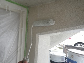 マンション入口1階部分の塀シーラー(接着剤)塗布写真!
