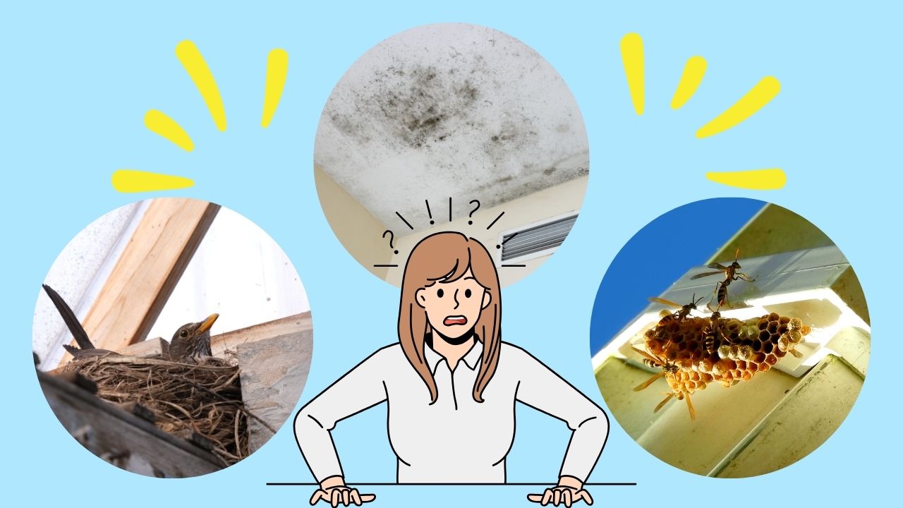 もし、軒天の劣化を放置して崩れてしまった場合、どのようなトラブルが発生するかをしっかりと理解しておきましょう。このトラブルがどれだけ厄介な事態になるかは、少し考えただけでもゾッとすると思います。
