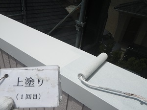 - ◆バルコニー笠木上塗り1回目:丁寧に塗料を塗布していきます