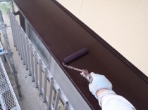 - ◆上塗り1回目:塗布量を守り、丁寧に塗布していきます(細かい部分は刷毛を用い塗装します)