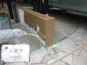 - 外壁上塗り1回目:丁寧に塗布していきます