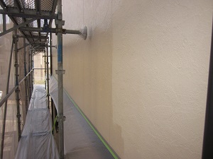 - 外壁上塗り2回目:丁寧に塗布していきます