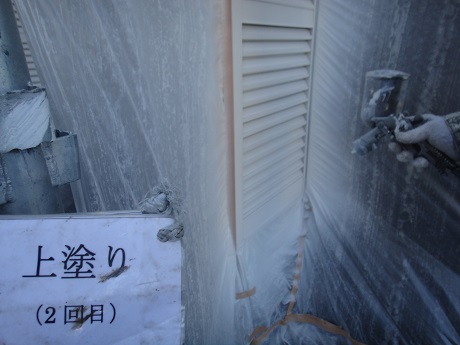 - 外壁上塗り2回目:塗布量を守り、丁寧に塗布していきます
