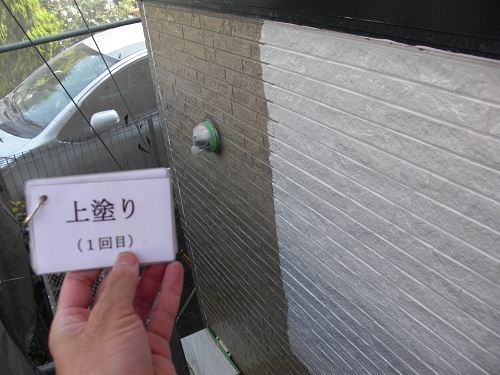 - 外壁上塗り1回目:塗布量を守り、塗装していきます