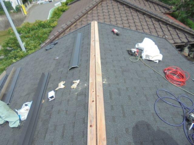 - 屋根葺き替え工事:棟板金木下地の設置