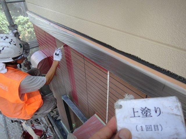 - 外壁1階上塗り2回目:丁寧に塗布していきます