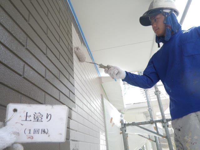 - 外壁上塗り2回目:塗布量を守り、丁寧に塗布していきます