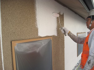 - ◆外壁中塗り:上塗りの密着をよくする為に塗布します