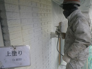 - ◆上塗り1回目(中塗り):塗布量を守り、丁寧に塗布していきます